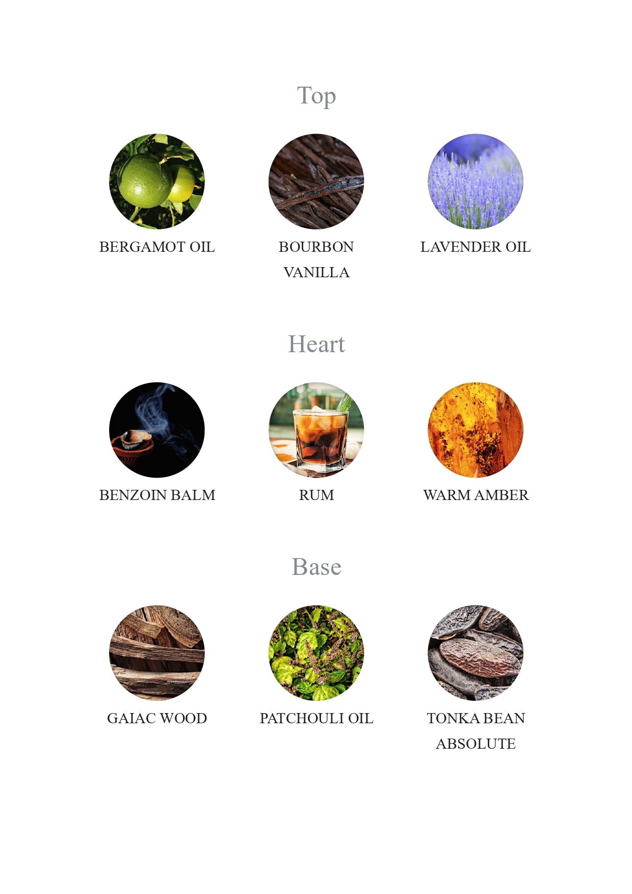 - Bāzes notis: Gaiaka koks, Pačūlijas eļļa, Tonkas pupiņu absolūts